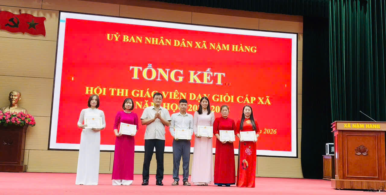 Đ/c: Vũ Văn Thành - PCT UBND xã trao giấy khen giáo viên đạt thành tích xuất sắc trong Hội thi