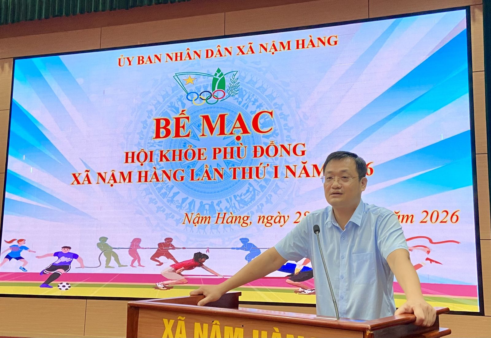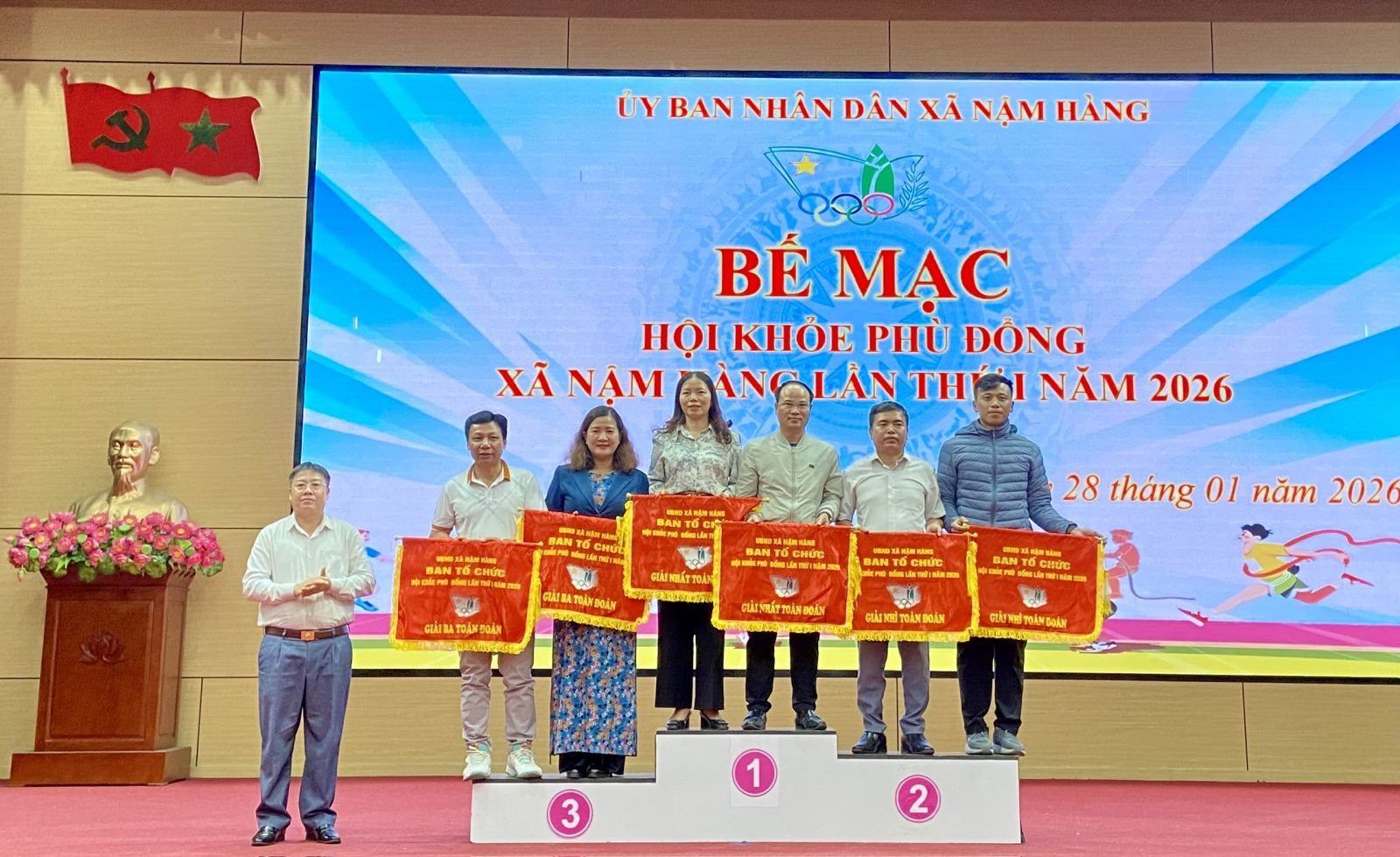 Chiều ngày 28/01, Ủy ban nhân dân xã Nậm Hàng tổ chức Lễ bế mạc Hội khỏe Phù Đổng xã năm 2026. Tham dự Lễ bế mạc có đồng chí Vàng A Dơ - Phó Bí thư thường trực đảng ủy; Hảng Thị Mỷ - UVBTV, Phó Chủ tịch HĐND xã; đồng chí Vũ Văn Thành - UVBTV, Phó Chủ tịch Ủy ban nhân dân xã, Trưởng Ban Tổ chức Hội khỏe Phù Đổng xã, các đồng chí trong Ban Tổ chức cùng đông đảo vận động viên tham gia Hội khỏe Phù Đổng.