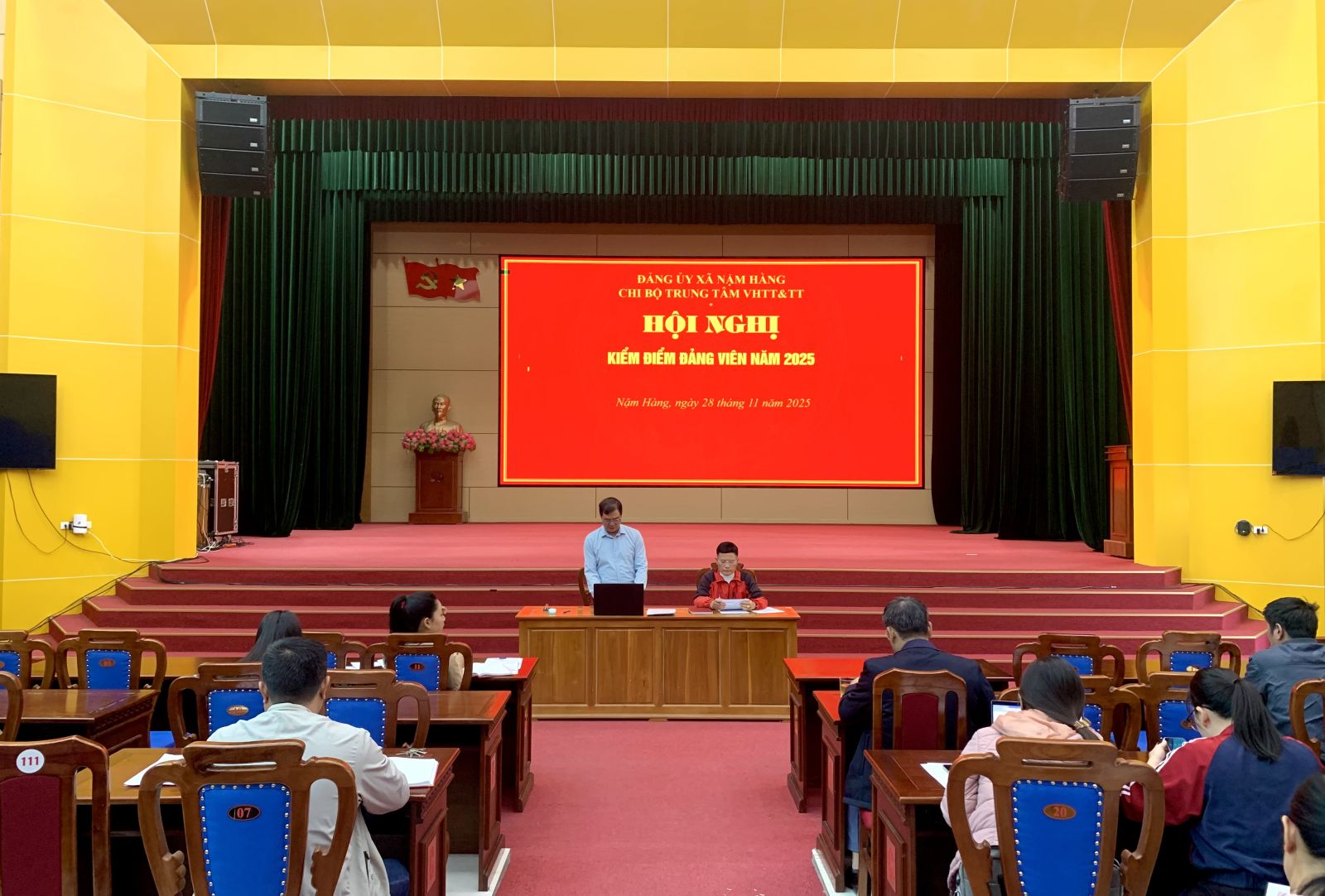 Chiều ngày 28/11, Chi bộ Trung tâm VH, TT&TT Nậm Hàng đã tổ chức Hội nghị kiểm điểm, tự đánh giá, xếp loại chất lượng của tập thể Chi bộ và Đảng viên năm 2025. Dự và chỉ đạo hội nghị có đồng chí Vũ Văn Thành - Uỷ viên BTV Đảng uỷ, Phó Chủ tịch UBND xã. Đồng chí Nguyễn Mạnh Hà, Bí thư Chi bộ, Giám đốc Trung tâm Văn hoá, Thể thao và Thông tin chủ trì Hội nghị.