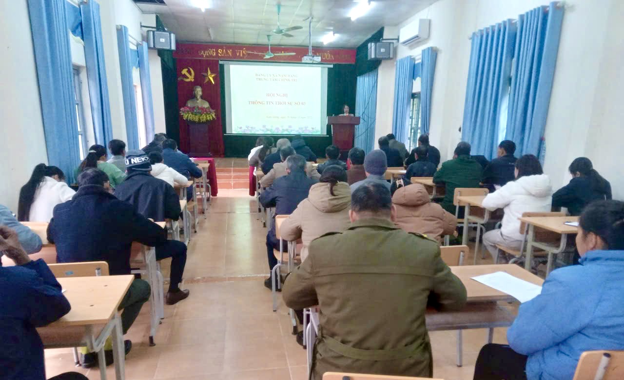 Thực hiện Quy chế phối hợp giữa Đảng ủy các xã Nậm Hàng, Mường Mô, Lê Lợi trong lãnh đạo, chỉ đạo công tác của Trung tâm Chính trị Nậm Hàng, ngày 02/12/2025, Trung tâm Chính trị xã Nậm Hàng phối hợp Ban xây dựng Đảng tổ chức Hội nghị thông tin thời sự cho 61 đảng viên, cán bộ bán chuyên trách, trưởng các tổ chức đoàn thể chính trị xã hội và Nhân dân các tổ dân phố Sông Đà, Pá Kéo, Nậm Hàng, Noong Kiêng, Nậm Nhùn của xã Nậm Hàng.